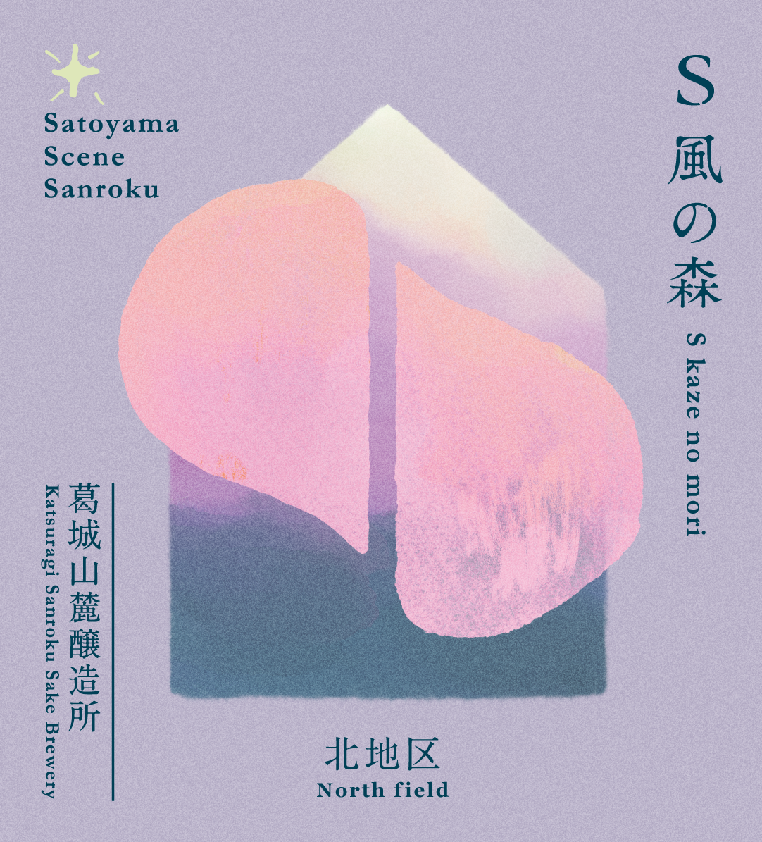 S 風の森のラベルでは、山麓蔵からの景色や風景(Scene)を切り取り表現。山麓蔵に訪れた方もなかなかご覧になれない時間の様子も知っていただきたいと考え、早朝にだんだんと朝陽が登り、山里の深い朝霧がモノクロの夜をだんだんと彩りのある世界へ塗り替えていく様子を描きました。